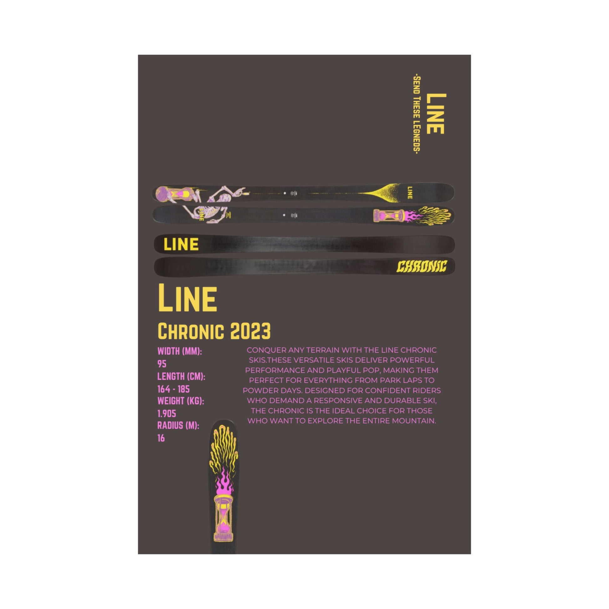 Printed on premium matte paper using vibrant, fade-resistant inks, this poster showcases one of our original designs in sharp detail and bold color. Whether you're decorating your bedroom, gear room, or ski lodge, it's the perfect way to bring slope-side style to any space.
